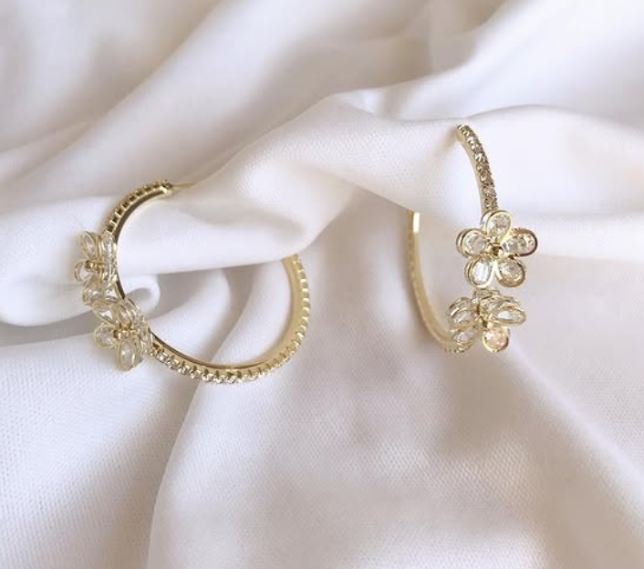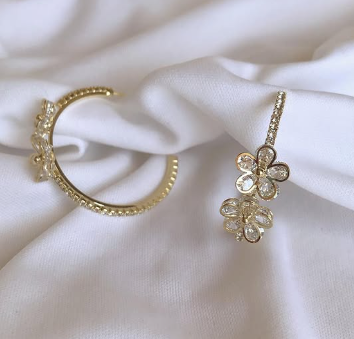 Estas argollas delicadas combinan el brillo del chapado en oro con un detalle floral en zirconia cúbica que aporta luz y sofisticación. Su diseño femenino y atemporal las convierte en el accesorio ideal para ocasiones especiales como bodas, aniversarios o para darle un toque chic a tu día a día.