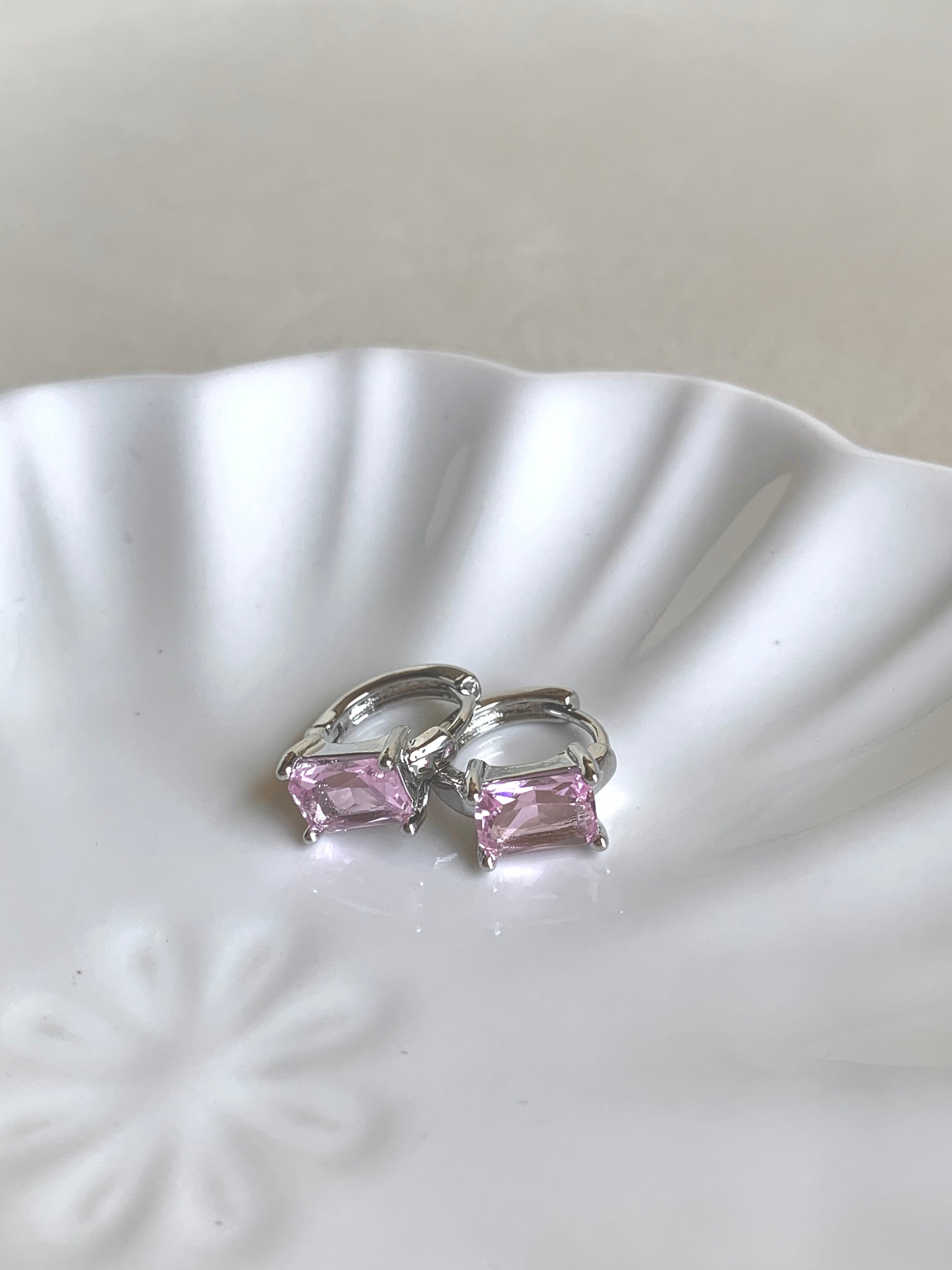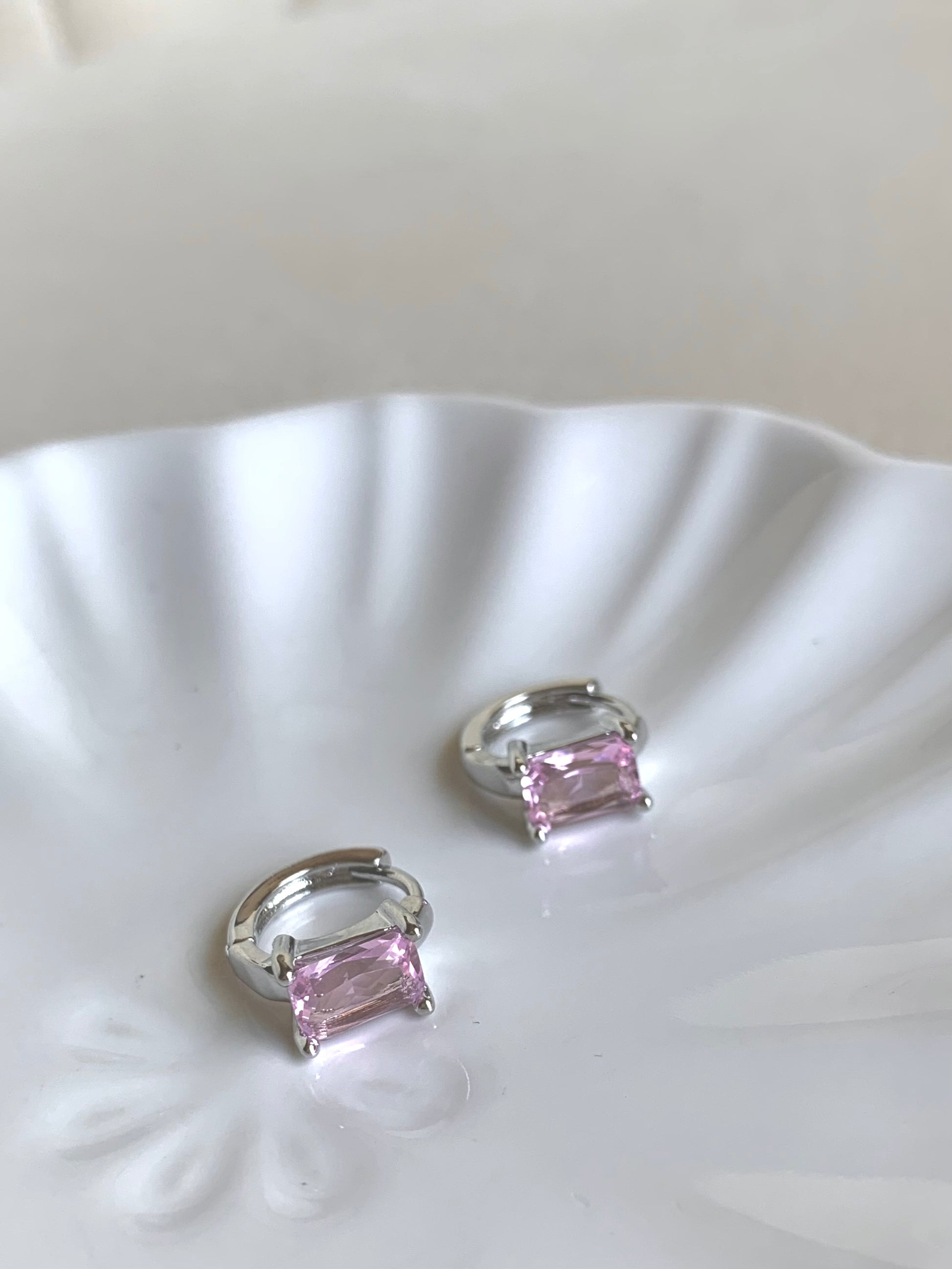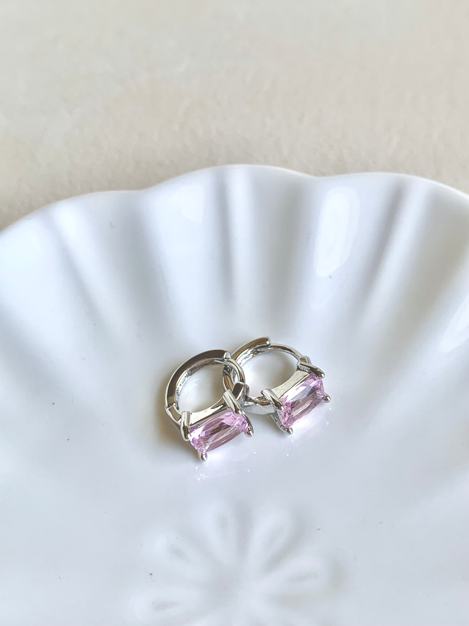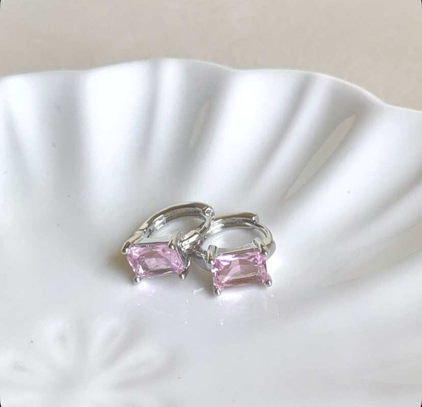 Mini argollitas bañadas en rodio, libres de níquel y con un circon rosado🍬