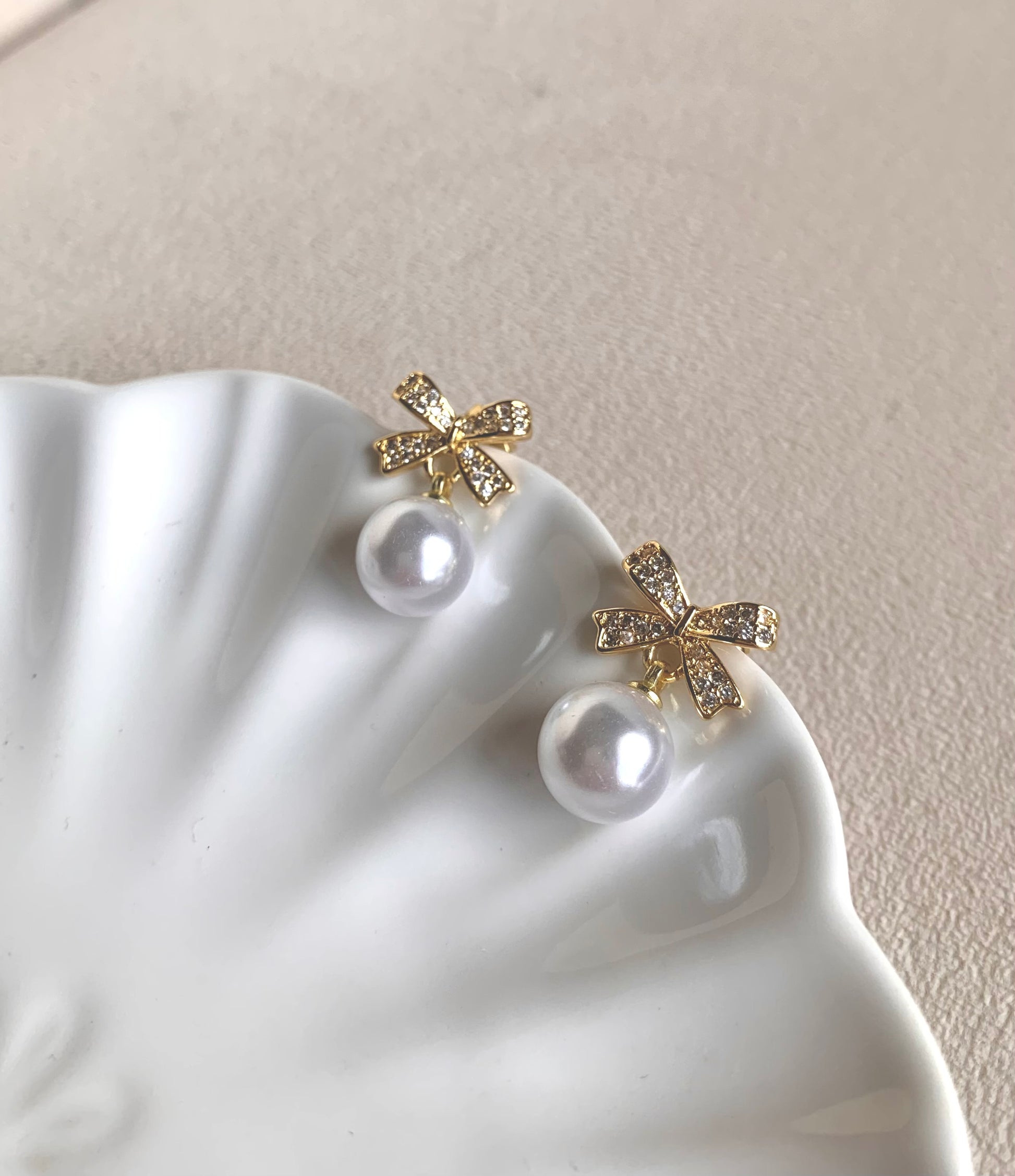 Bañados en oro 18k con moño decorado con microcircones de alta calidad y perla sintética de acabado nacarado. Livianos, cómodos y resistentes al desgaste diario.