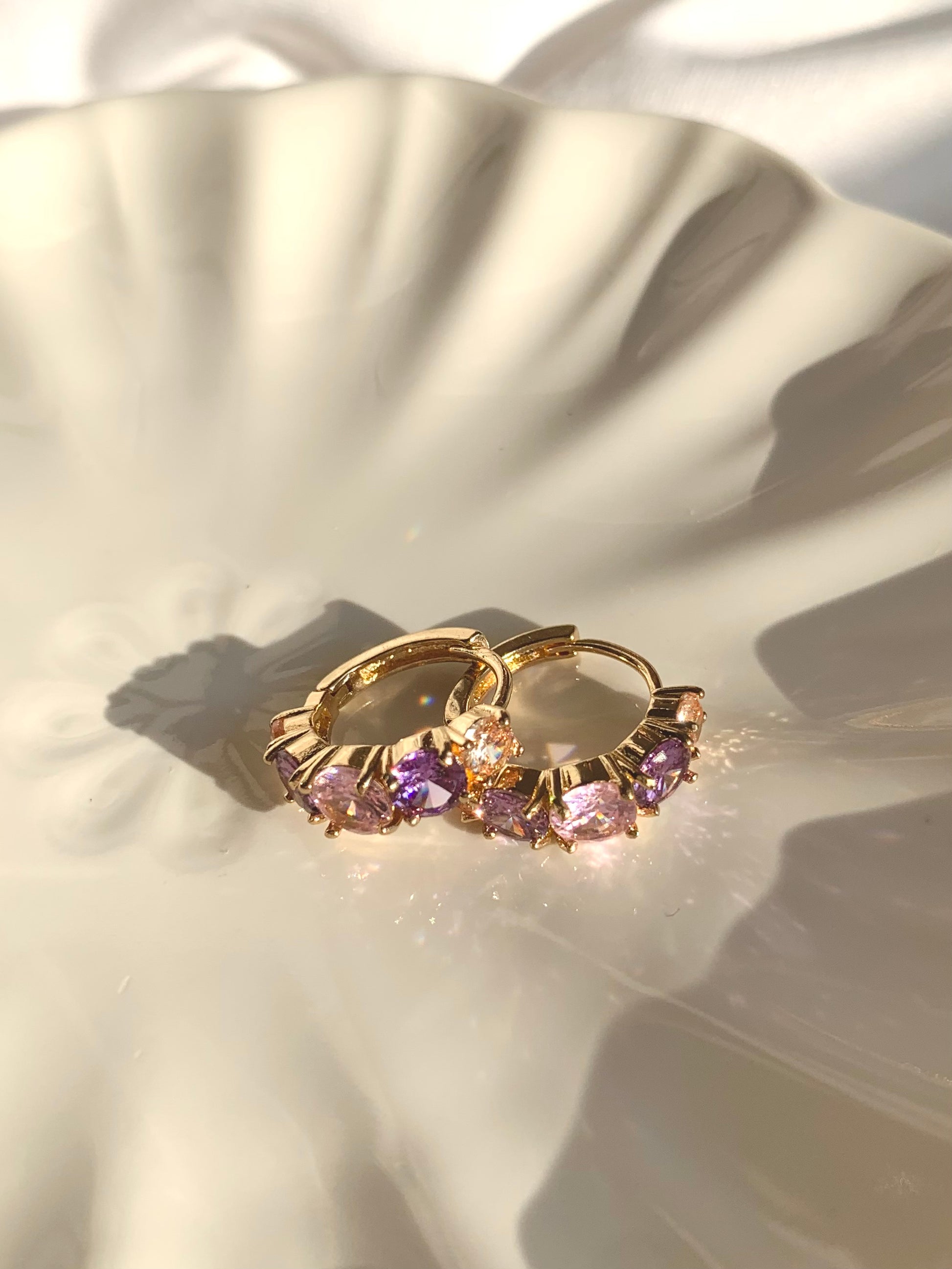 Argollas de 16mm, bañados en oro 18k, libre de niquel e hipoalergénico con circones en colores pasteles💜